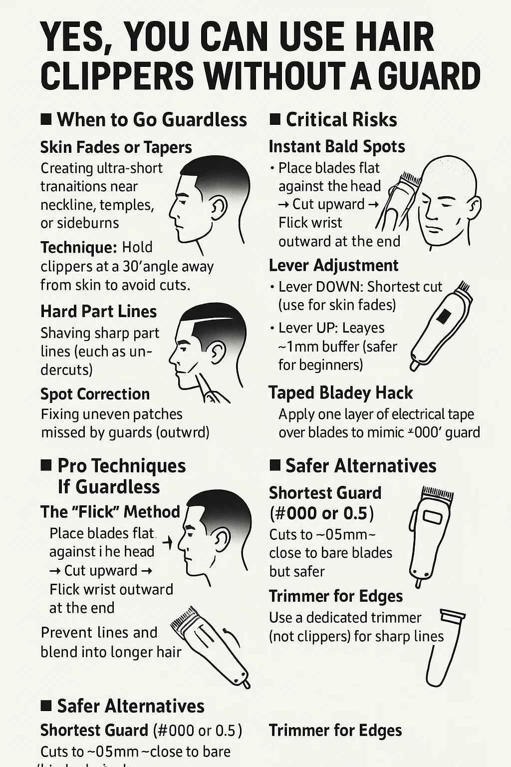 Sim, você pode usar máquinas de cortar cabelo sem guarda, mas requer cautela e técnicas específicas. Aqui está o que você precisa saber: