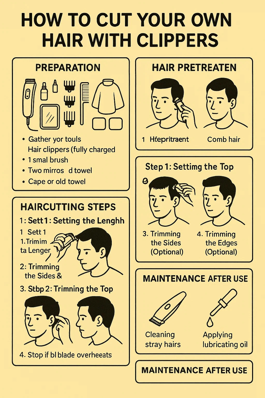 Cortando seu próprio cabelo com máquinas de cortar cabelo não é difícil; você pode fazer isso sozinho, desde que domine as etapas e técnicas básicas. Aqui está um guia simples e prático: