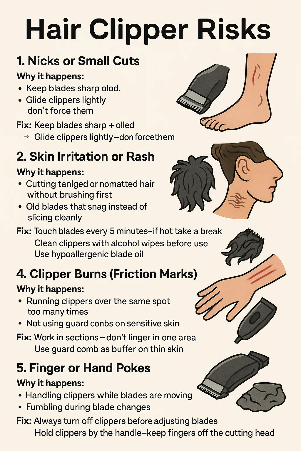 Sim, usando um máquina de cortar cabelo pode causar ferimentos leves ou desconforto se não for manuseado com cuidado. Aqui está uma análise direta dos riscos comuns e como evitá-los: