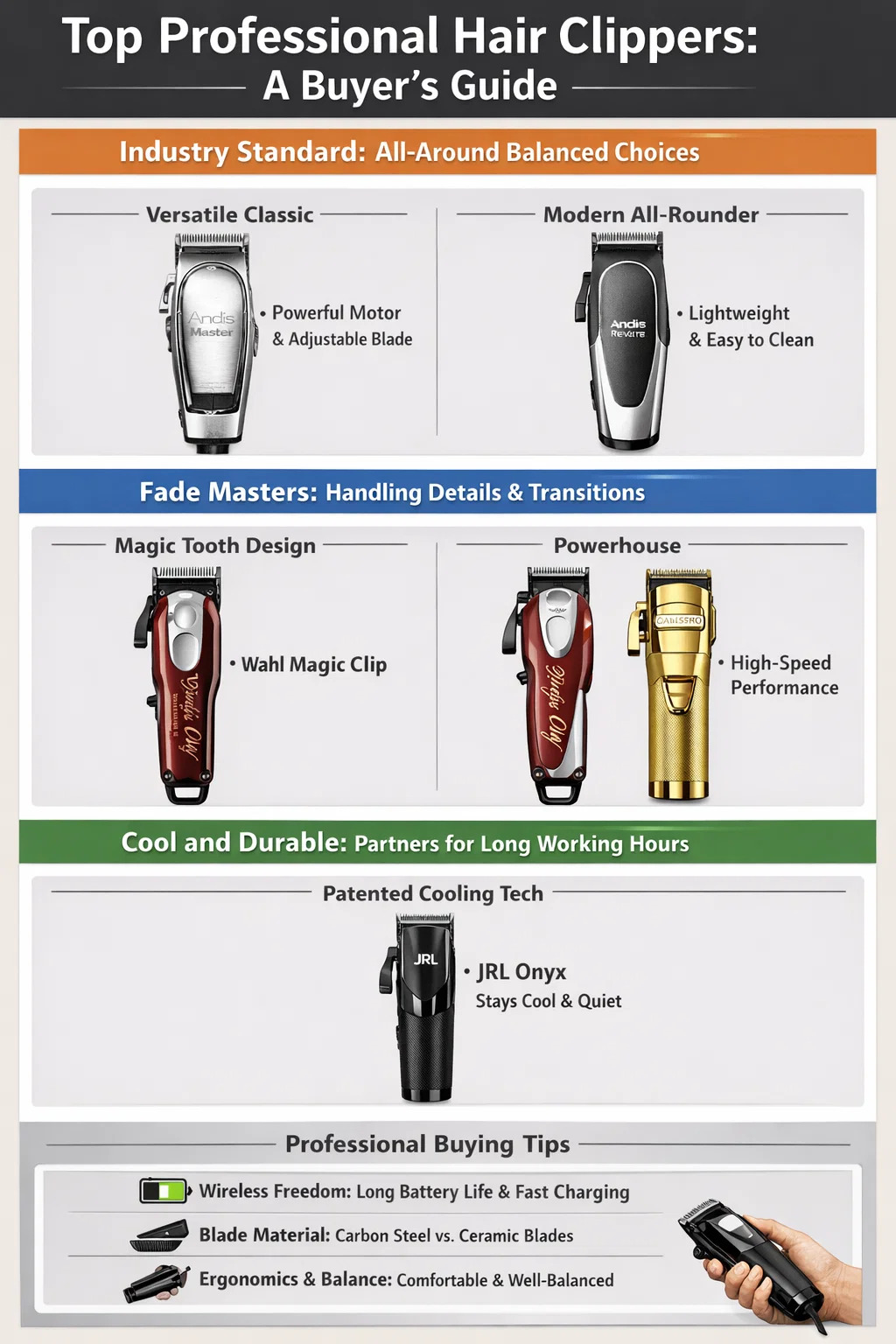 Se você está procurando por nível profissional máquinas de cortar cabelo , os barbeiros normalmente priorizam a potência, a nitidez da lâmina e o manuseio equilibrado. Aqui estão alguns dos modelos profissionais de melhor desempenho atualmente no mercado:
