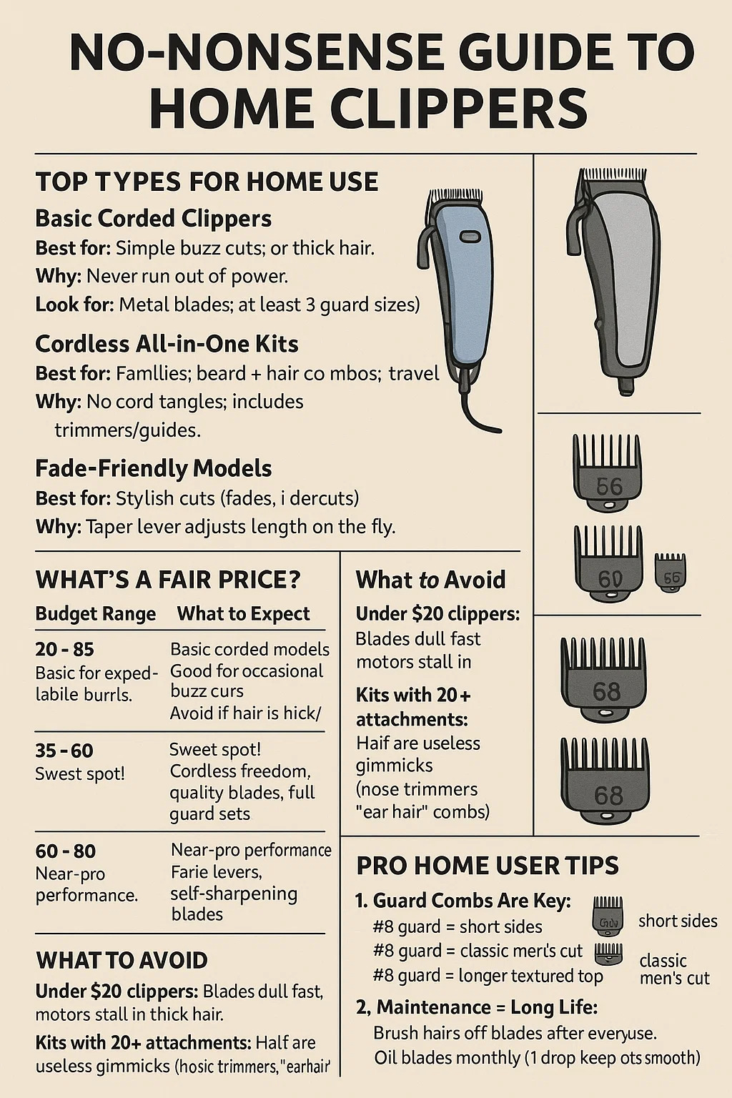 Para cortes de cabelo caseiros, você quer máquinas de cortar cabelo que equilibram facilidade de uso, confiabilidade e valor. Aqui está um guia prático: